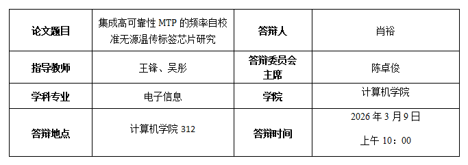 [1] Y. Xiao, S. Li, D. Yan and F. Wang, "A Passive RFID Temperature Sensor With 0.16 °C Resolution, +0.42 °C/ -0.83 °C Inaccuracy and 0.234 nJ/Conversion," in IEEE Sensors Journal, vol. 25, no. 10, pp. 18136-18144, 15 May, 2025. (中科院三区,本人一作)